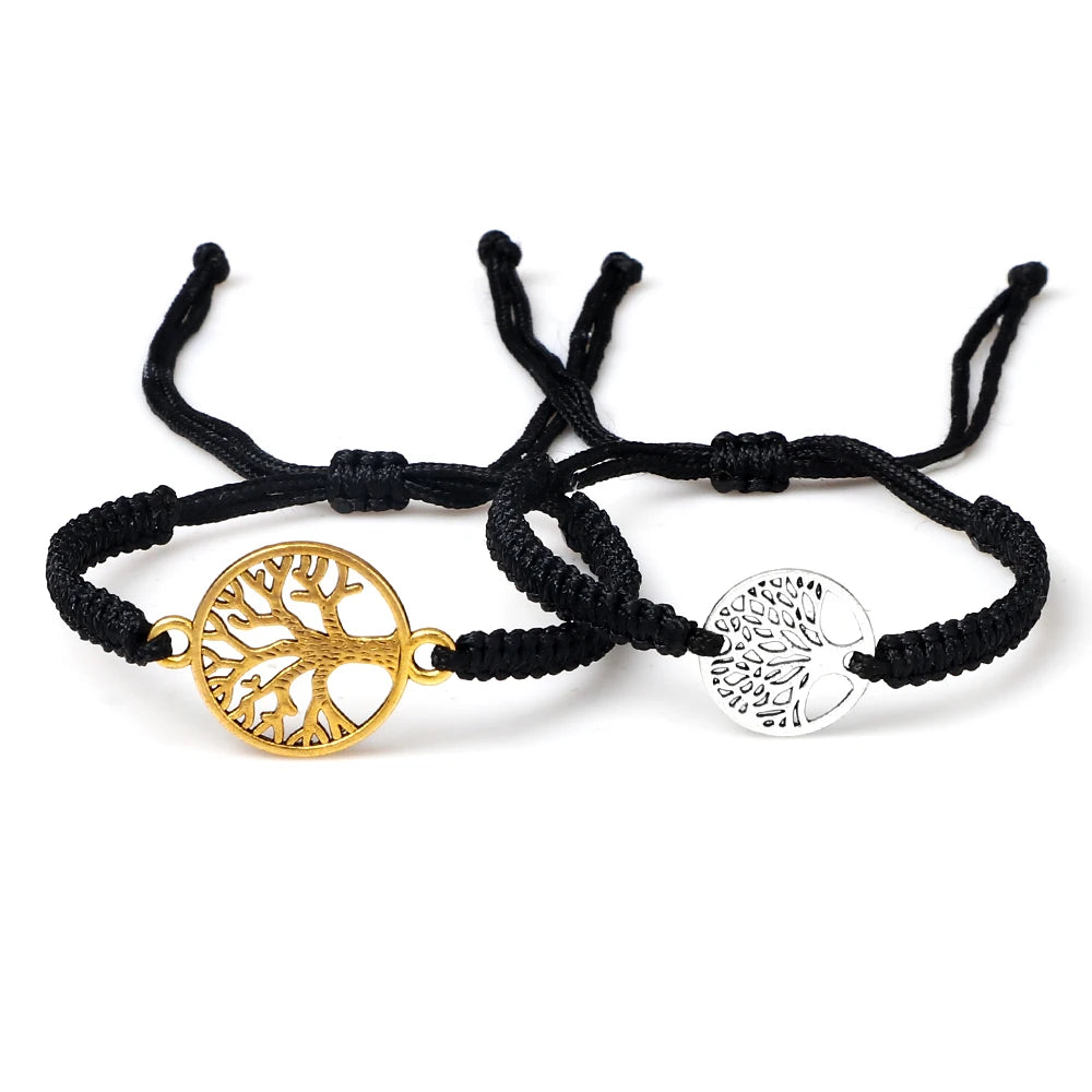 2pcs/set Red Black Life Tree Thread Bracelets Men Handwoven Braided Adjustable Tibetan Buddhist Bracelet Women Lover Jewelry Gifts