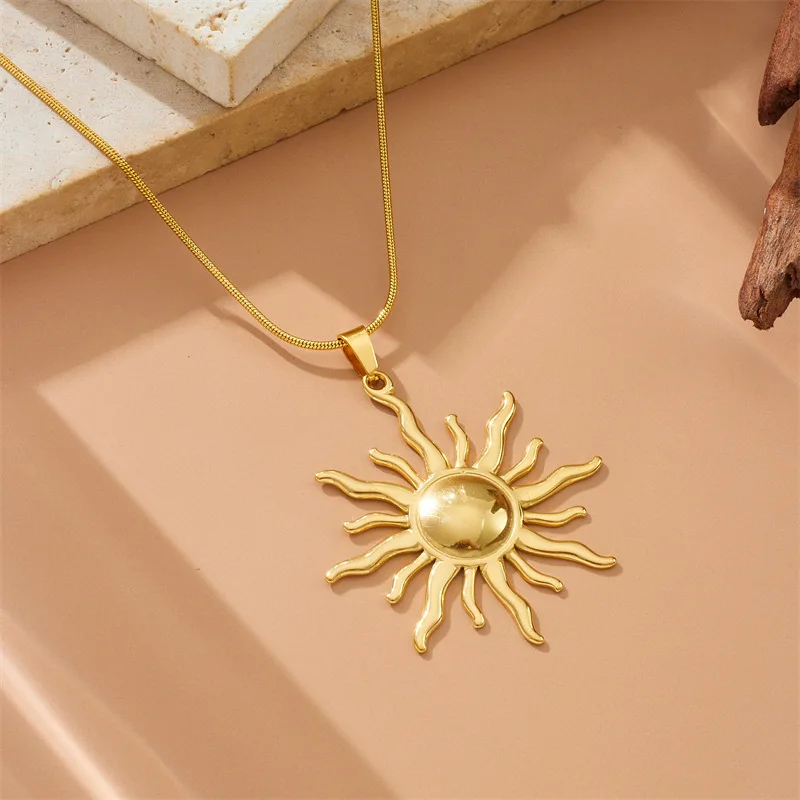 316L Stainless Steel Golden Fashion Sun Pendant Necklace For Women Girl 2024 New Concise Solar Neck Chain Jewelry Gift