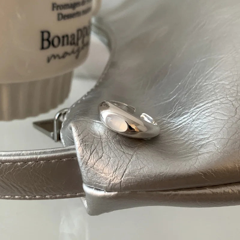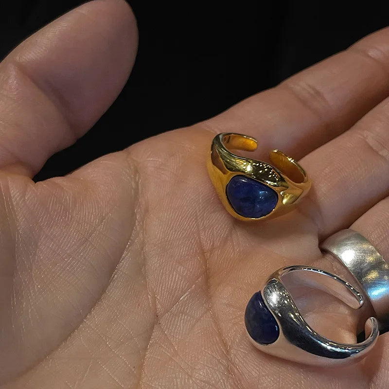 925 Sterling Silver plated Liquid Lava Hetian Jade Bamboo Ring for Women Girl Gift Irregular Vintage Jewelry Dropshipping