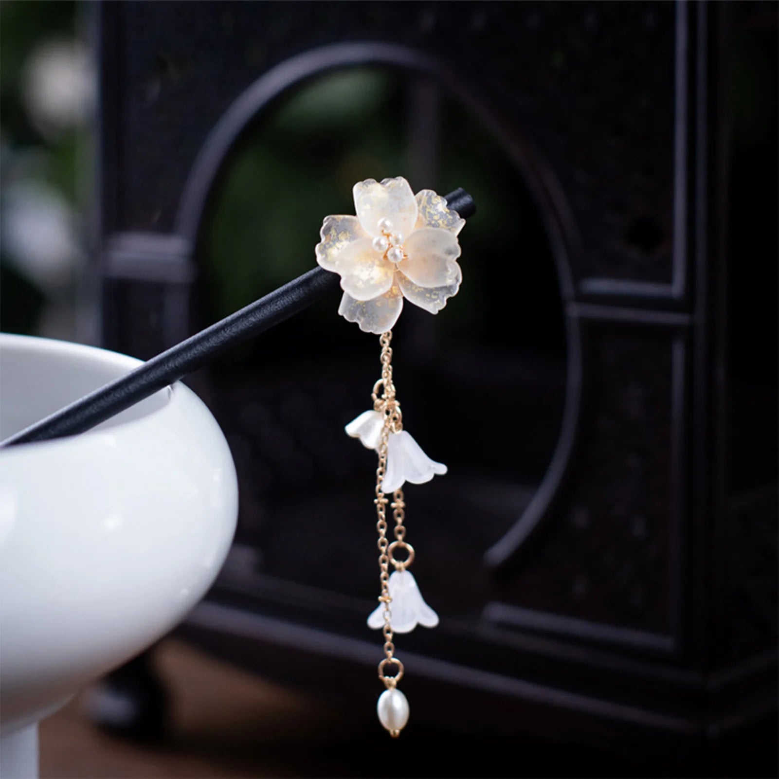 Unique Tassel and Pearl Design: Stand out with our chinese tassel hair chopsticks, adorned with a beautiful pearl flower tassel that adds a touch of sophistication and charm to your hair, perfect for creating a stylish and eye-catching look.