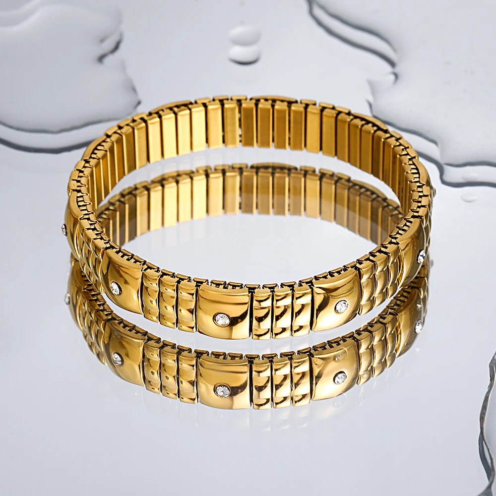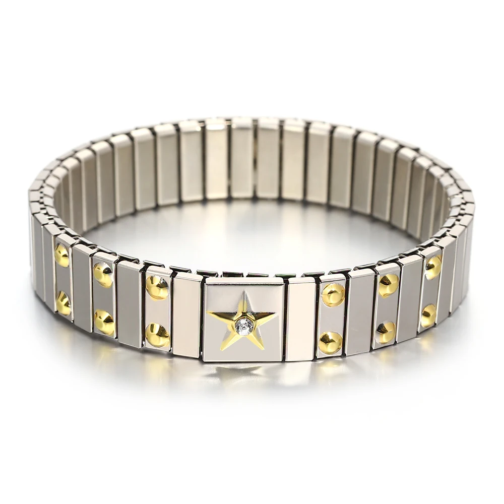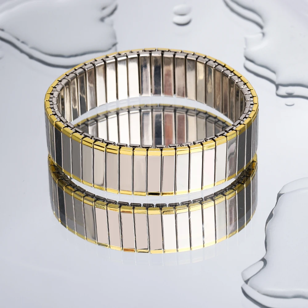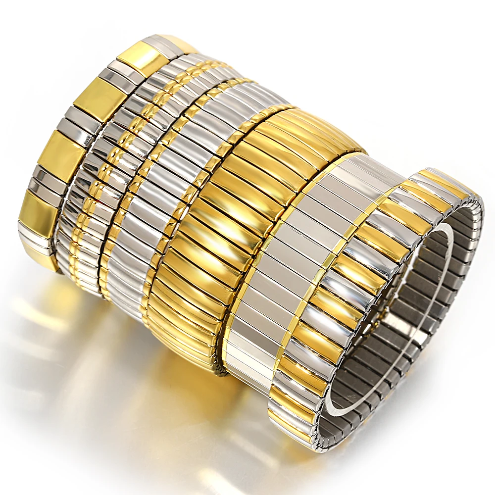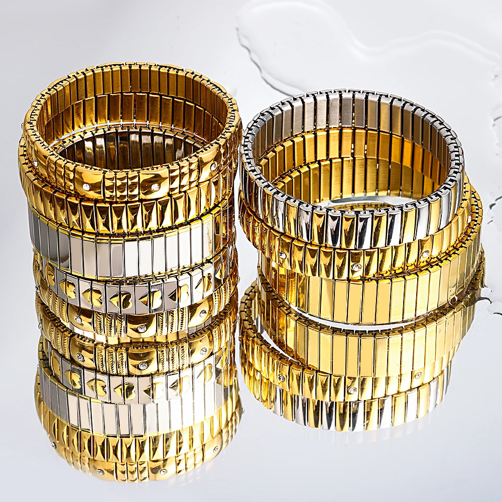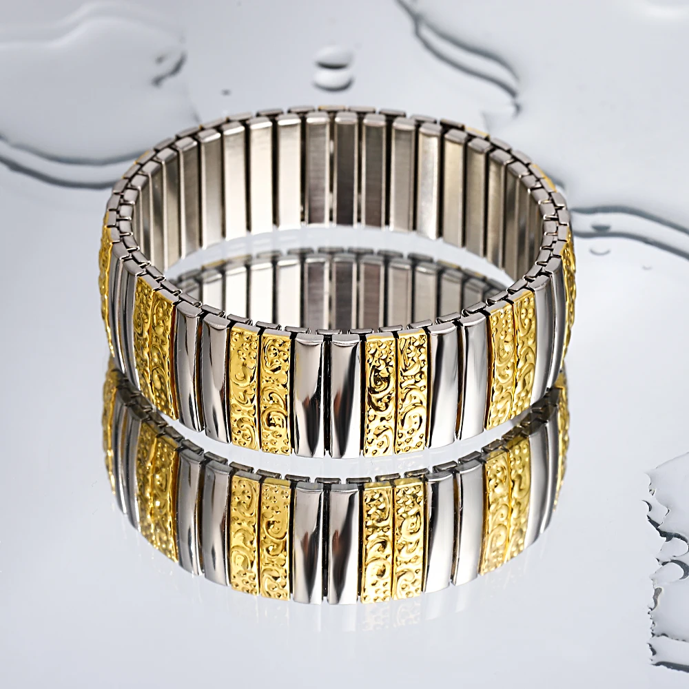 Freetry 18K Gold Plated Stainless Steel Adjustable Bracelet Fashion Elastic Metal Bracelet Trendy Jewelry Accessories Official