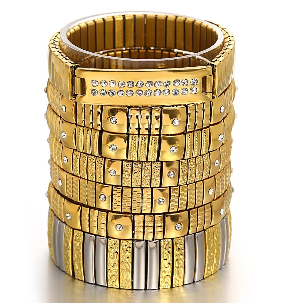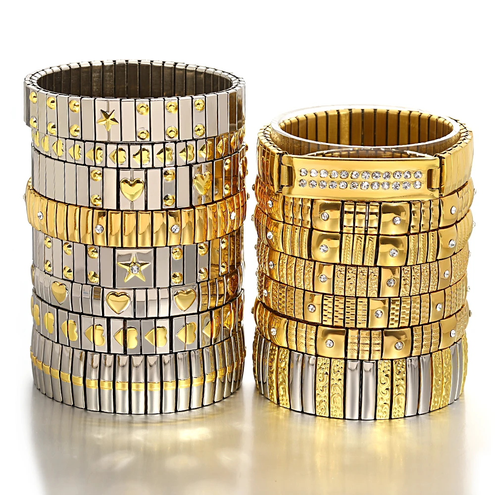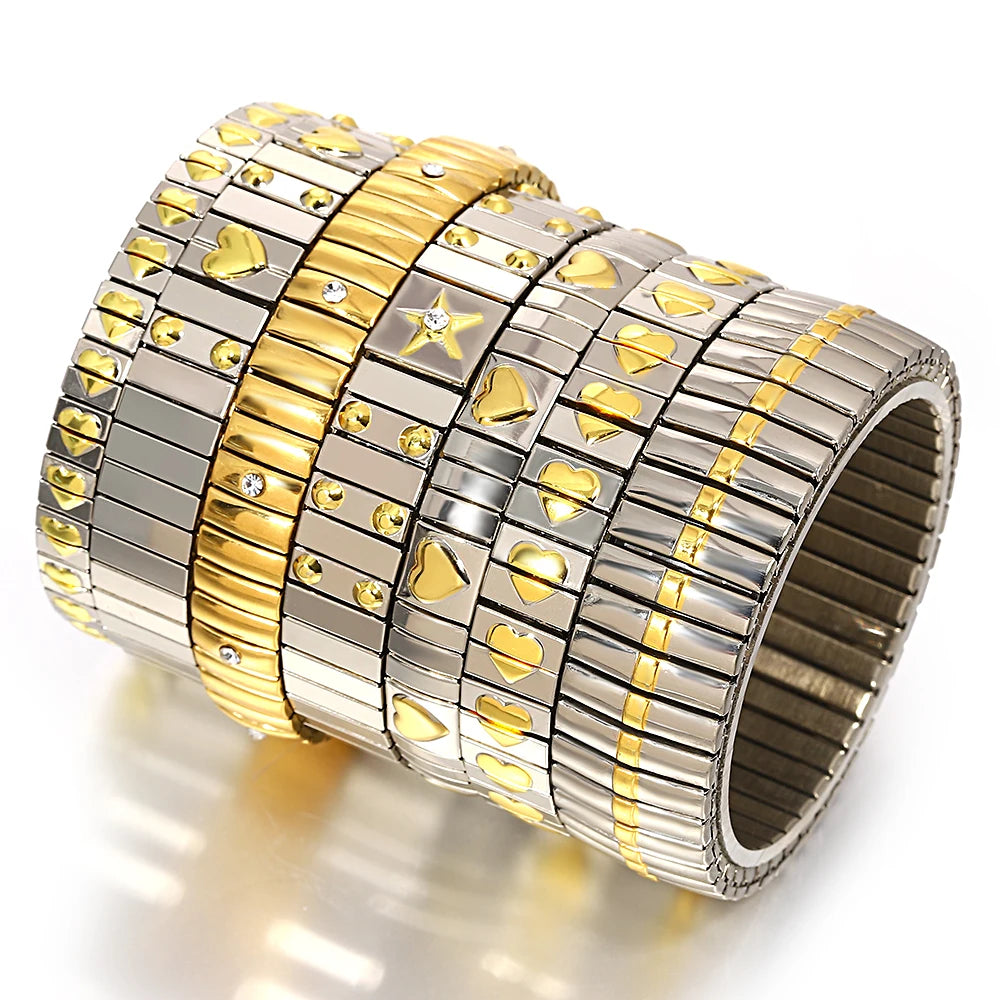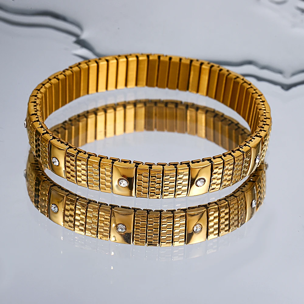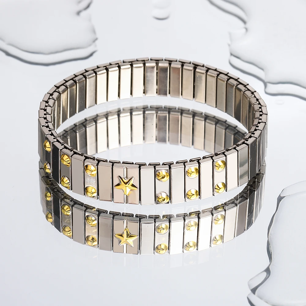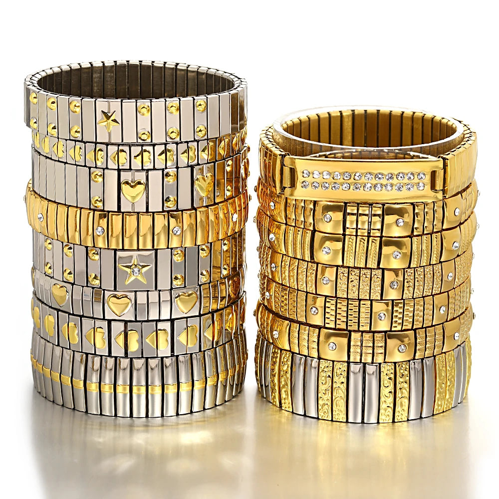 Freetry 18K Gold Plated Stainless Steel Adjustable Bracelet Fashion Elastic Metal Bracelet Trendy Jewelry Accessories Official