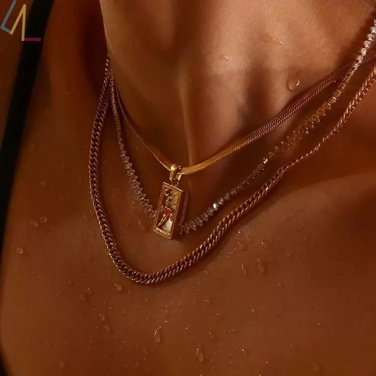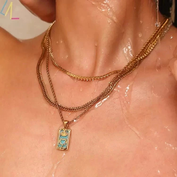 Gold Color Necklace for Women Zircon Christmas Jewelry Colorful Geometric Meaningful Sun Lover Stainless Steel Tarot Necklaces