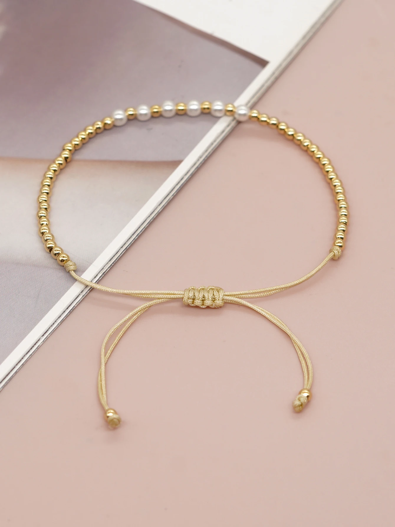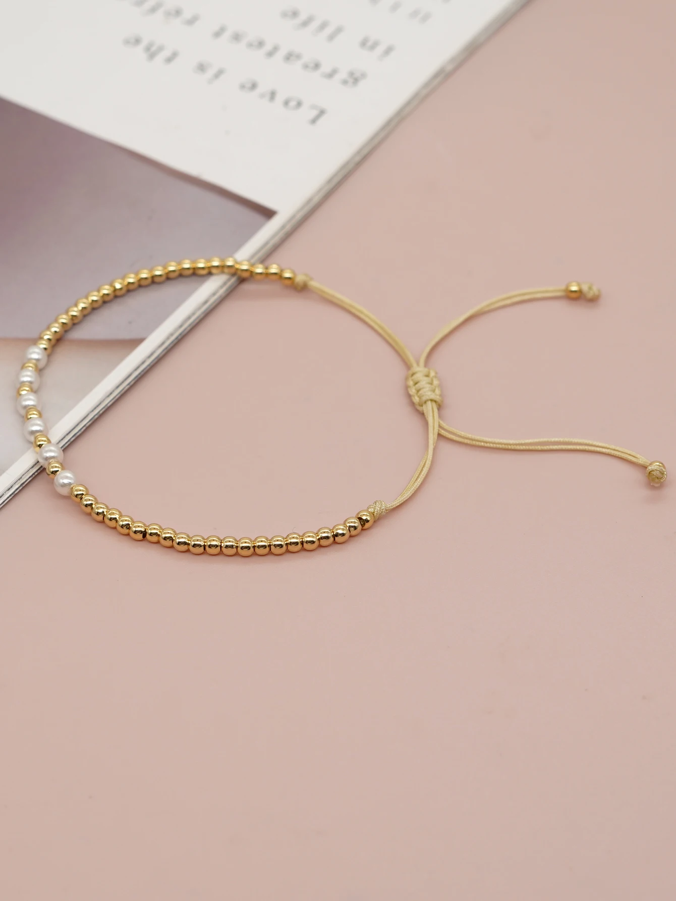Gold Plated Beaded Surfer Bracelets Natural Pearl Charm Bracelet Handmade Fashion Summer Jewelry for Women Teen Girl Gift