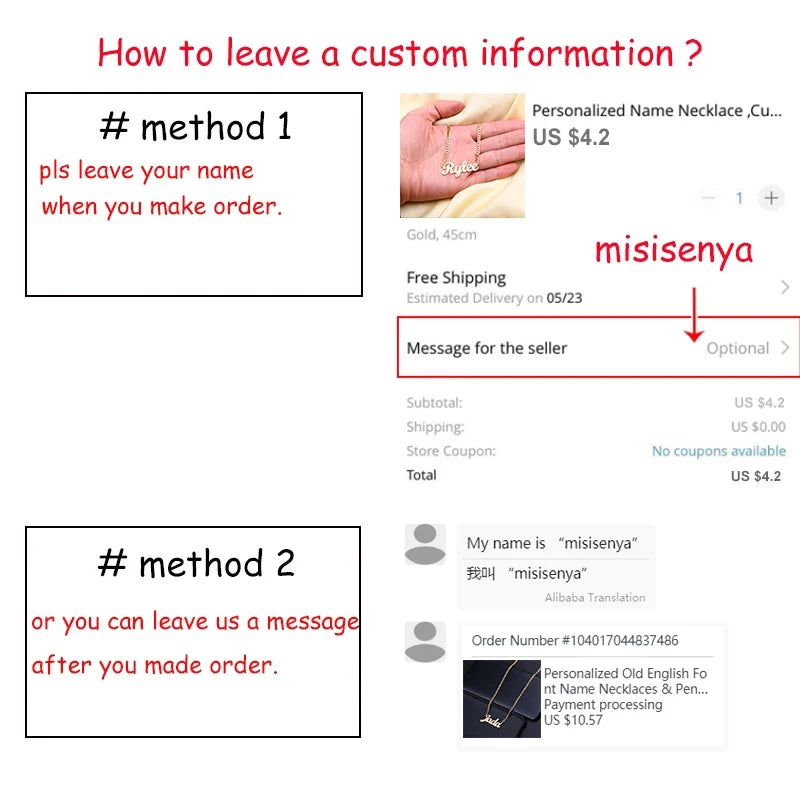 if you have special request about the name width and height,or the length of the chain ,you could also leave a message to us .
