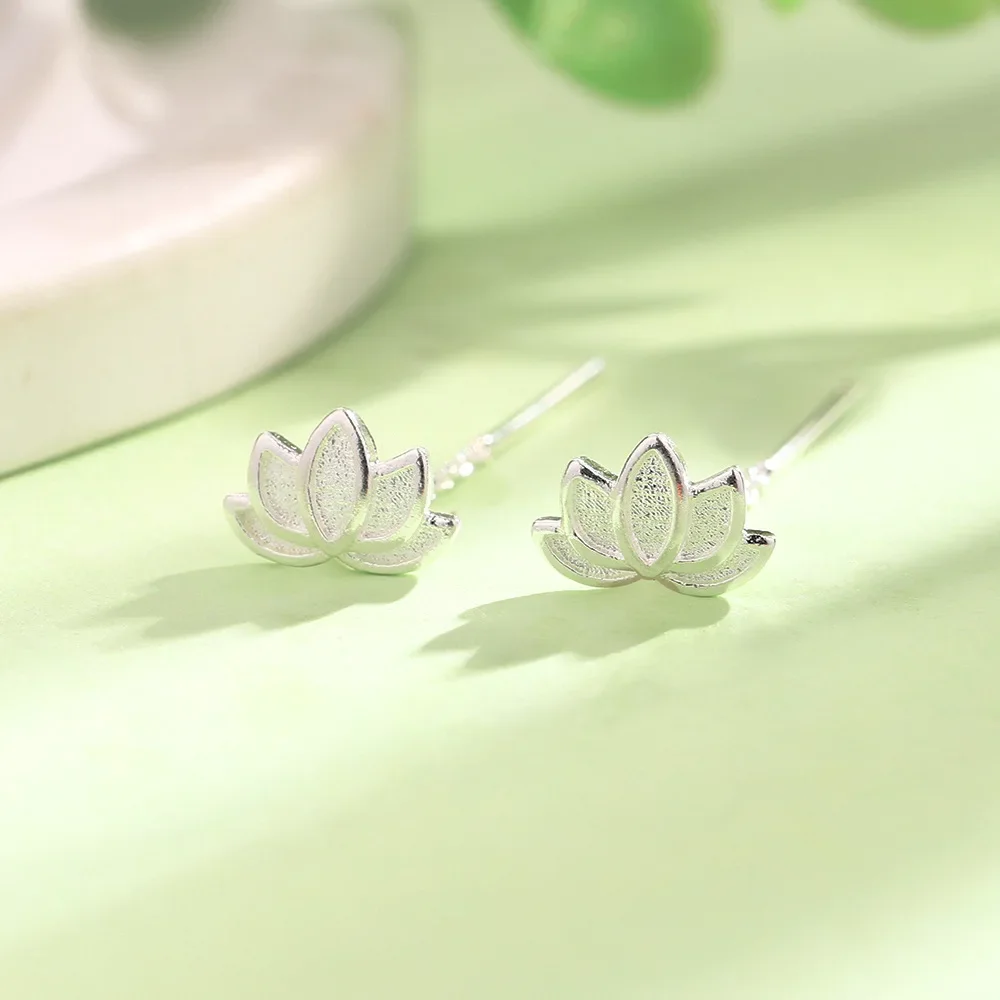 Real 925 Sterling Silver Long Cute Lotus Tassels Drop Earrings for Women Plant Fine Jewelry Allergy Minimalist Accessories