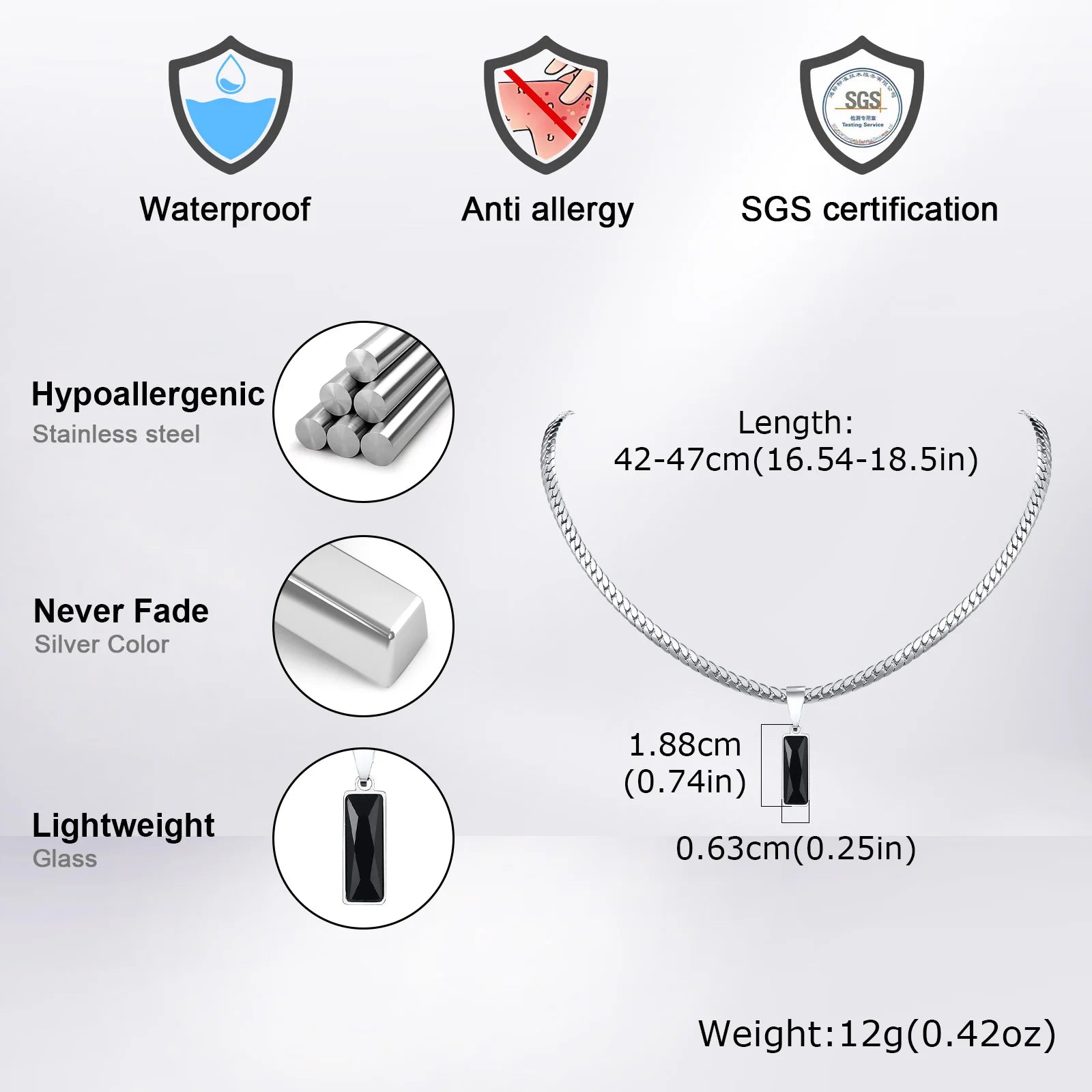 Stylish Mens Geometric Stone Pendent Necklaces,Stainless Steel Flat Cuban Chain Collars,Hip Hop Jewelry Gifts for Him Boys