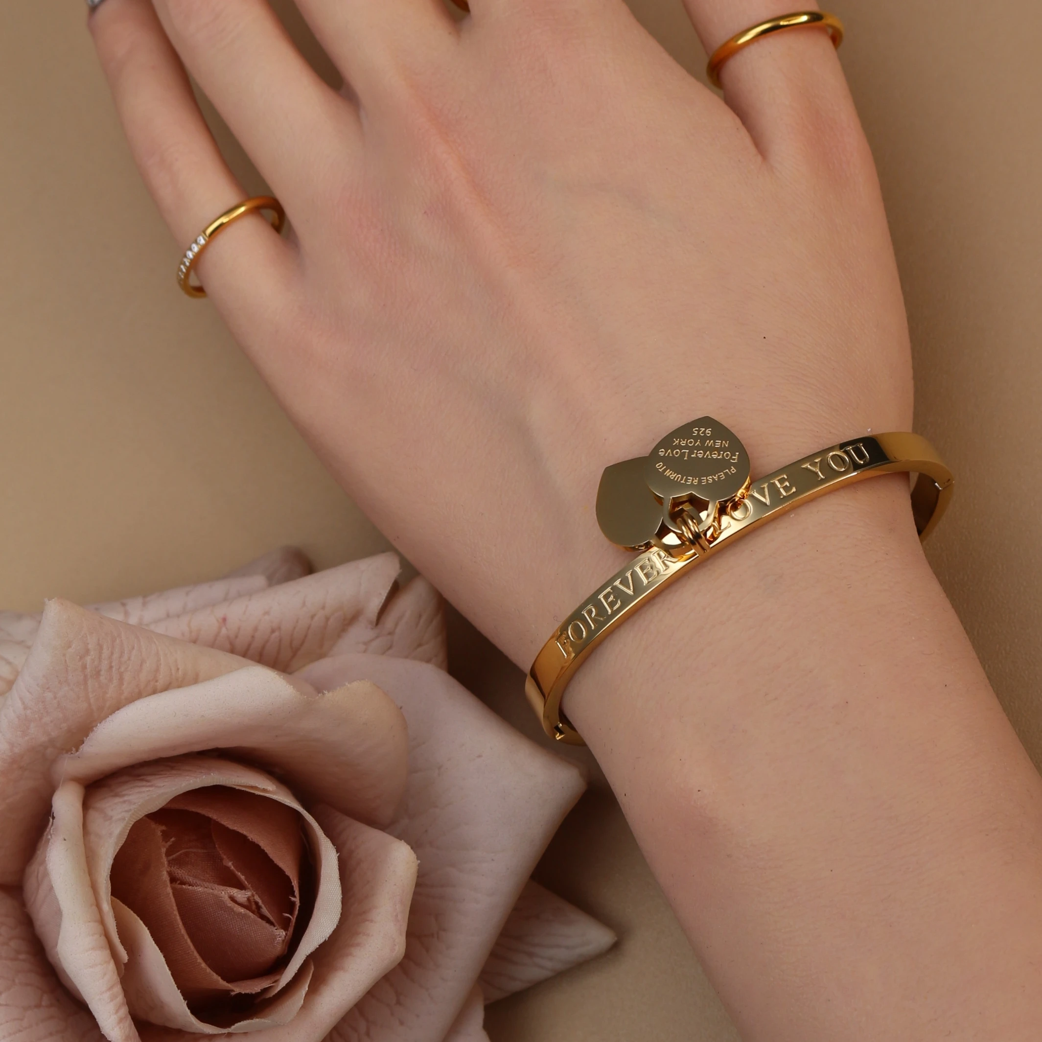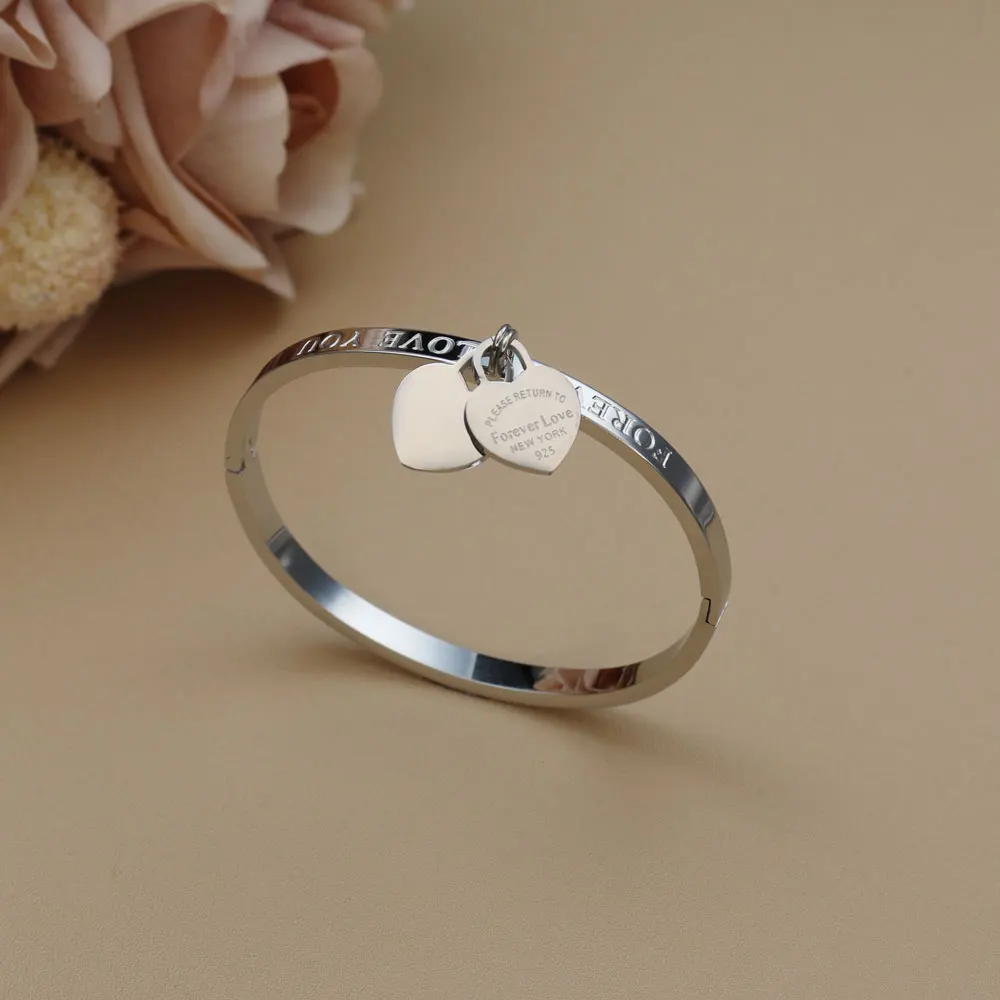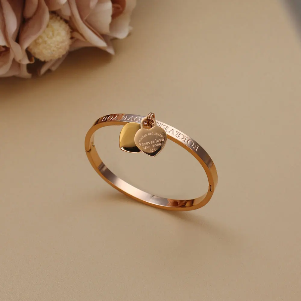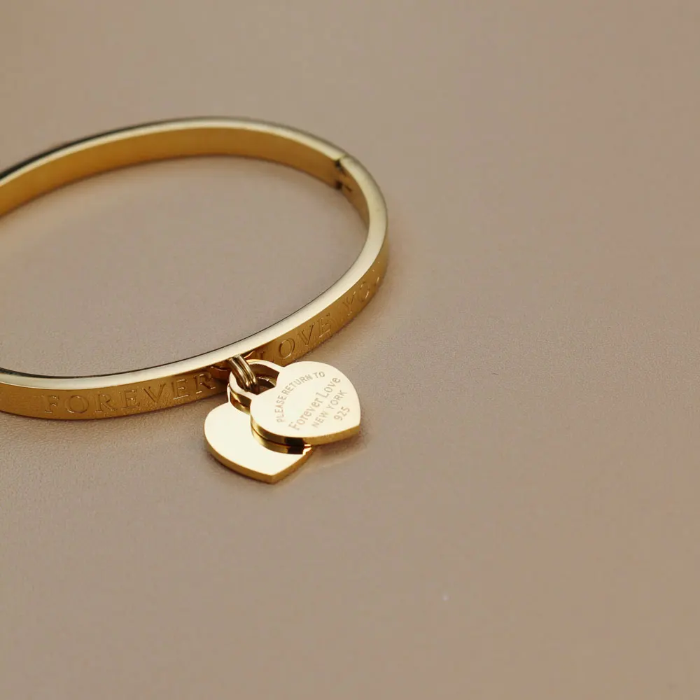XB999 Hot Classic Stainless Steel Gold Color Bracelets & Bangles Wholesale Jewelry Fine Double Peach Heart Love Bracelets Female