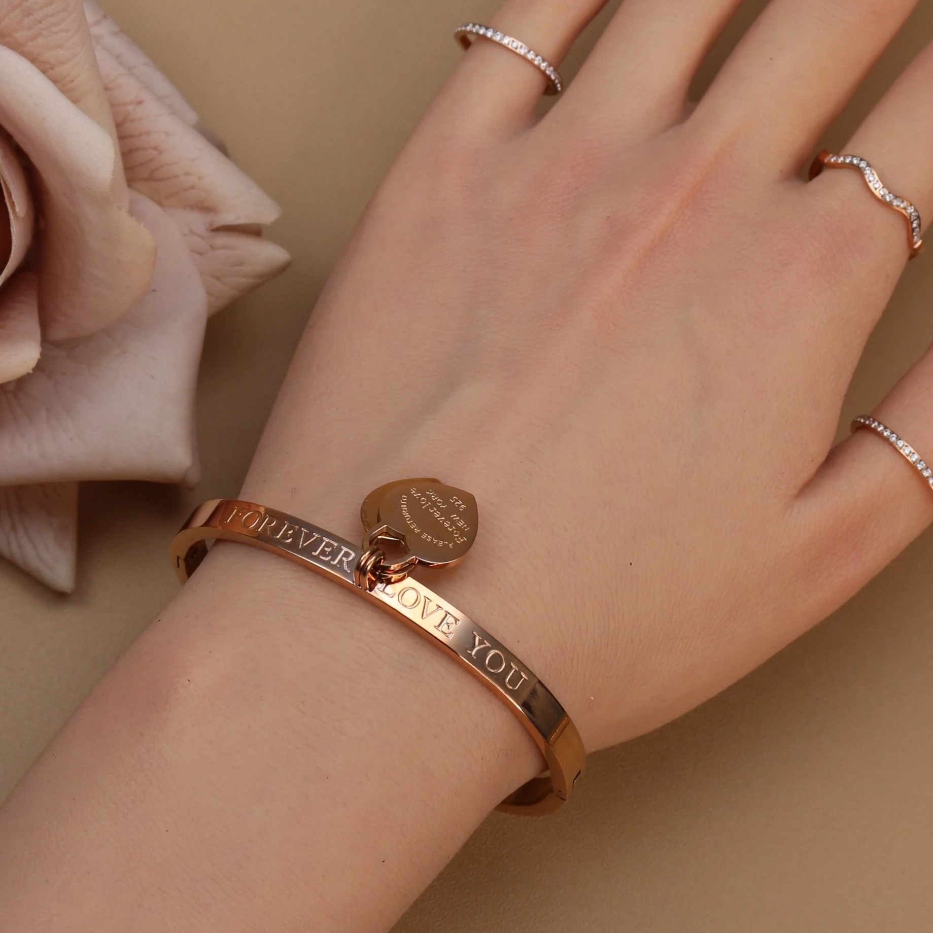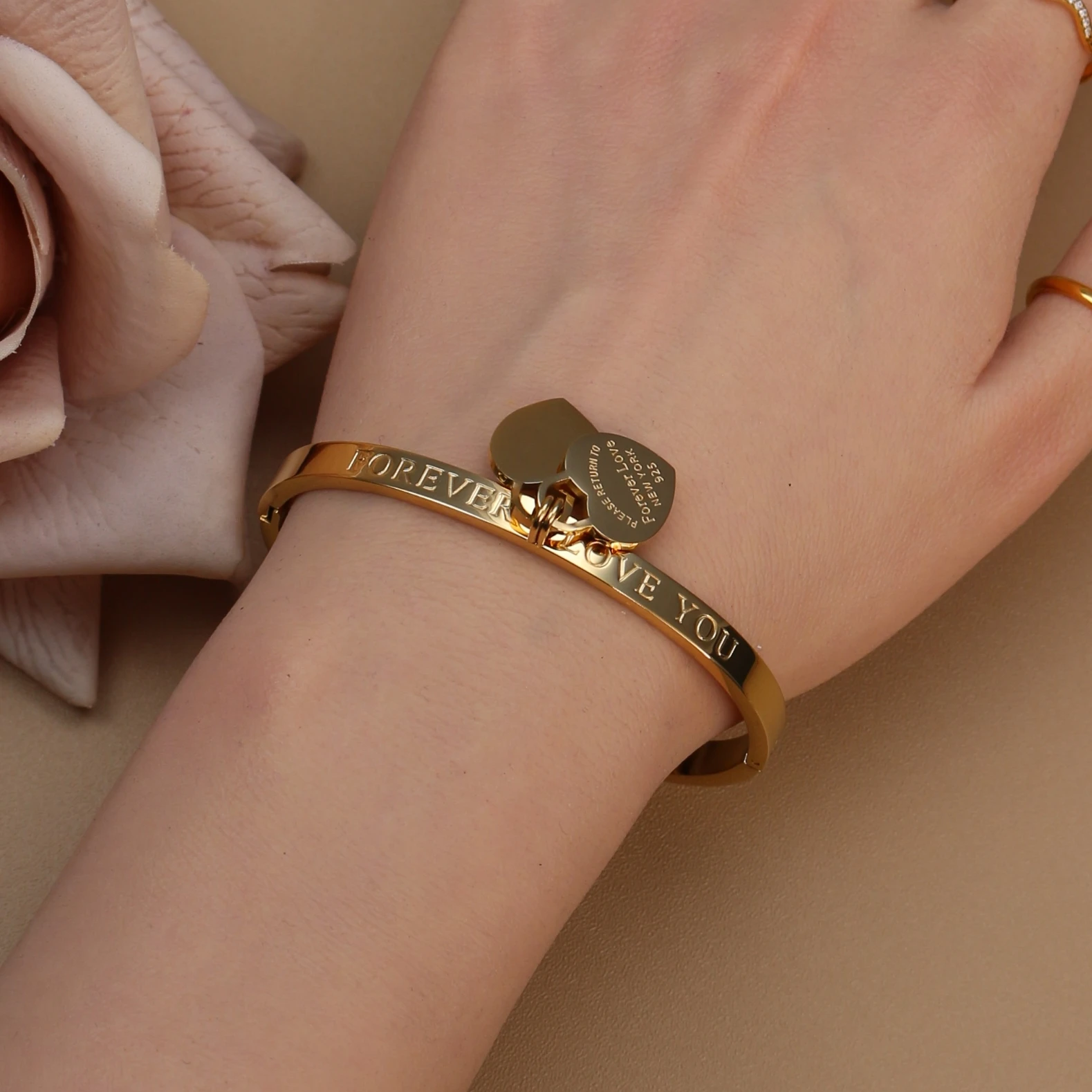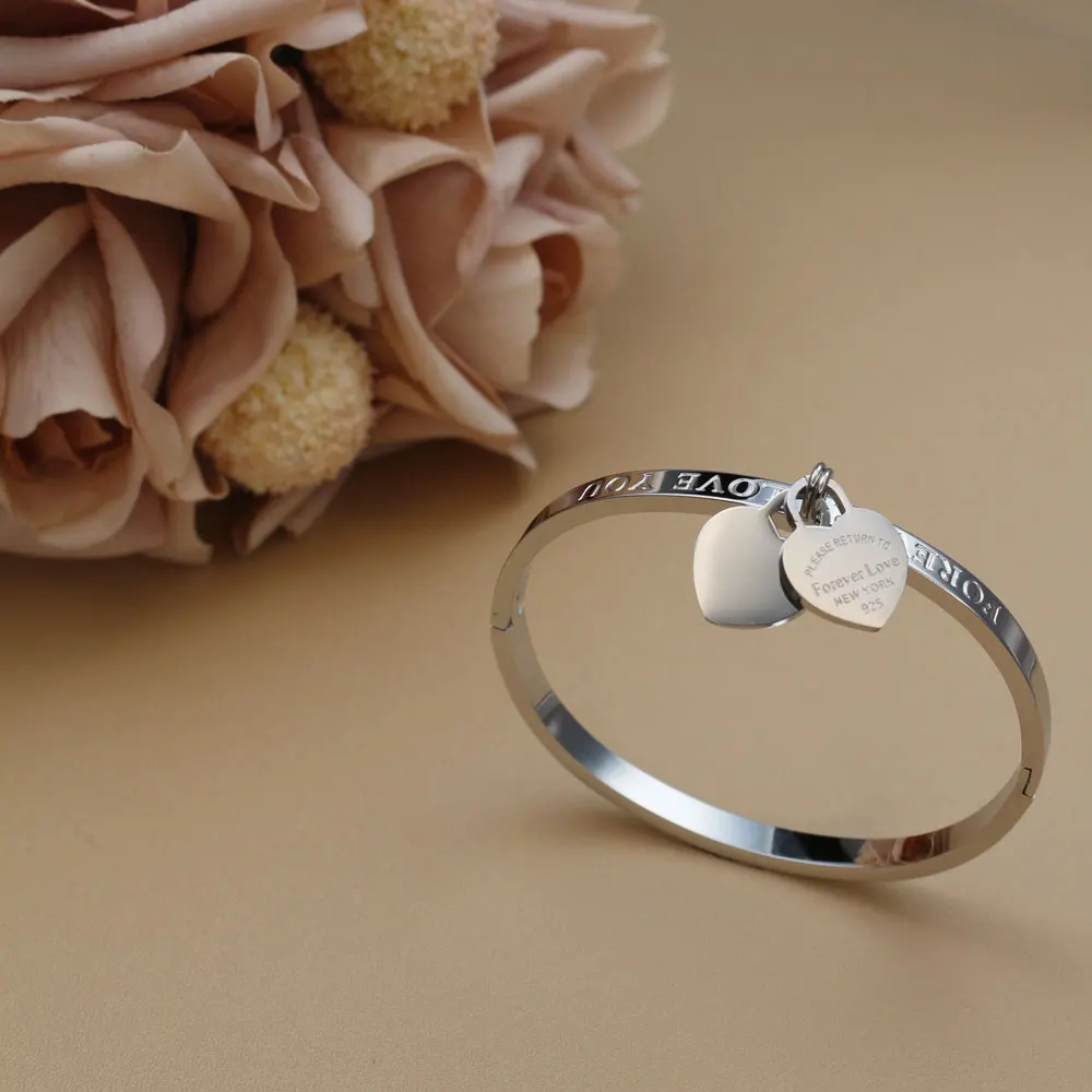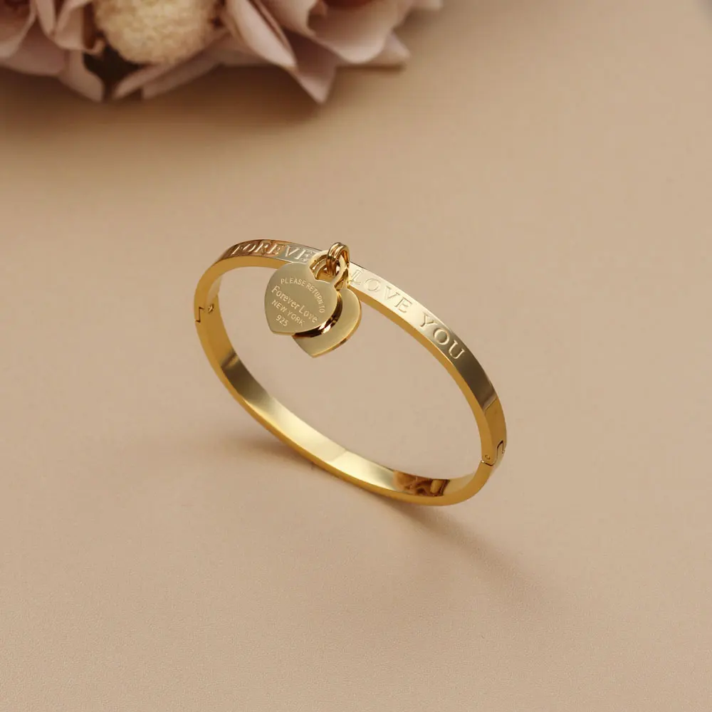 XB999 Hot Classic Stainless Steel Gold Color Bracelets & Bangles Wholesale Jewelry Fine Double Peach Heart Love Bracelets Female